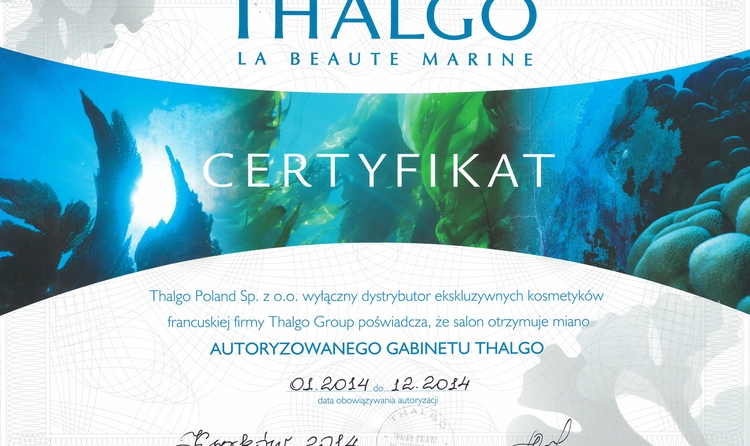 Miło mi poinformować, że nasz salon zdobył Dyplom Autoryzowanego salonu THALGO!